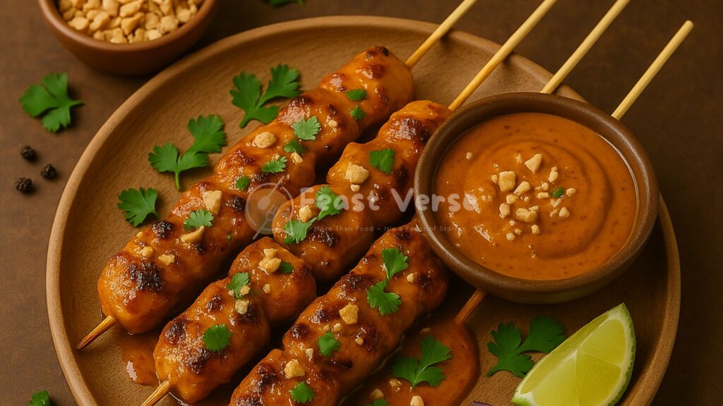 These grilled skewers dipped in creamy peanut sauce are bold, smoky, and full of umami.